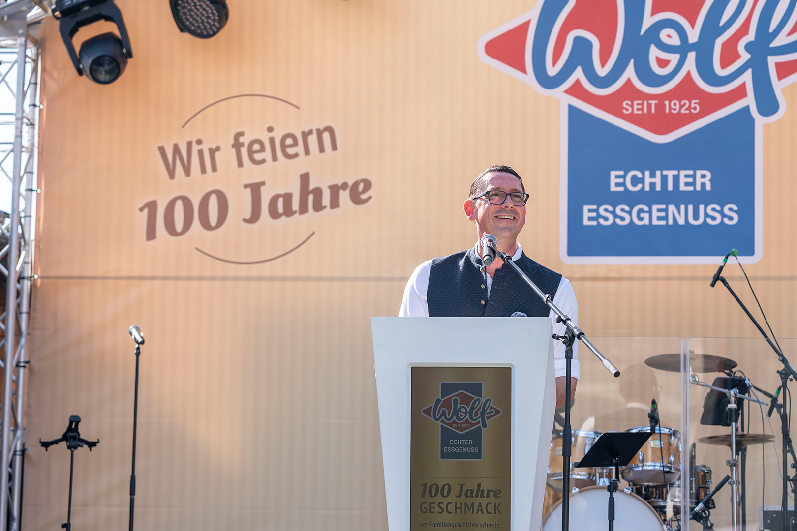 Am vergangenen Wochenende durfte die WOLF Firmengruppe ein ganz besonderes Jubiläum feiern: 100 Jahre WOLF. Seit 1925 steht unser Familienunternehmen für Tradition, Qualität und echten Geschmack – und das wurde jetzt mit einem großen Fest gebührend gefeiert.